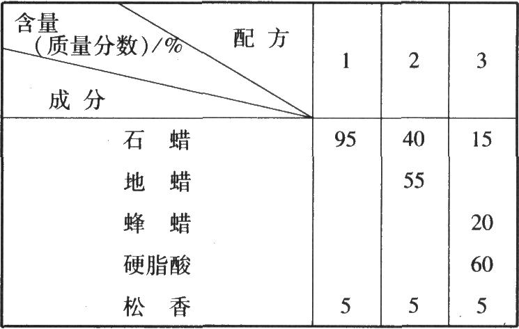 表2—4—9絕緣用蠟制劑配方