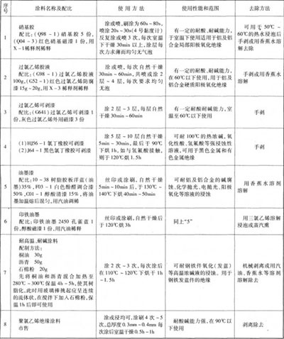 配方l和配方2適于工作溫度在40℃以下的鍍液,用于鍍鋅、鎘、銅、鎳、銀、鉛錫合金等,以及室溫或低溫陽極氧化的零件絕緣。配方3適用于工作溫度在40℃~60℃的鍍鉻以及用草酸、硫酸進行普通和硬質陽極氧化零件的絕緣。