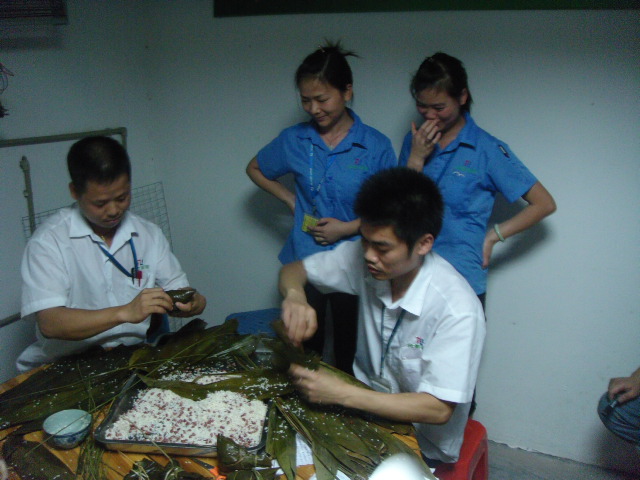 6月3日晚18:30,在主持人響亮的哨聲下,緊張的包粽子比賽開始了。巧媳婦女子組共24人參賽,新酷男男子組共18人參賽。不會的,現場學;會的,現場教。長的短的,大的小的,三角形的,長柱形的,各式各樣,匯聚的是合航人的歡聲笑語。